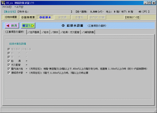 このページでは、給排水衛生設備工事の中の対象設備を選択します。 消
