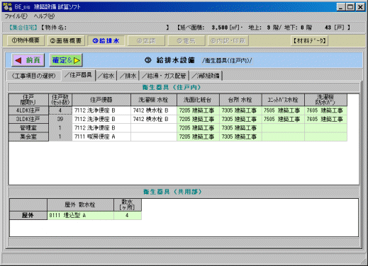 このページでは、各住戸内の衛生器具の種類を決めます。 選択の仕方