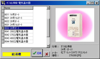 は、任意のセルをクリックすると下図のような器具選択フォームが現れますので、その中で選択し、決定して下さい。