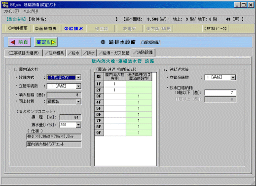 このページでは、屋内消火栓設備と、連結送水管設備の概要を入力しま
