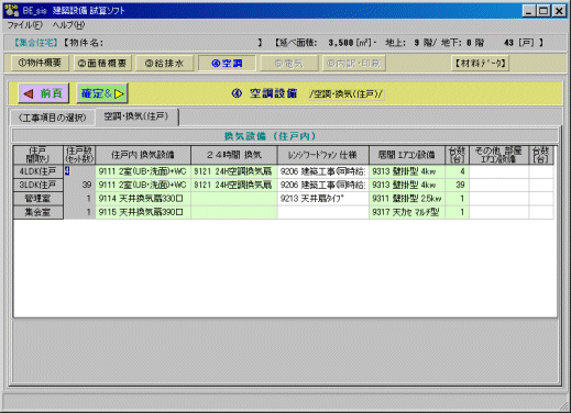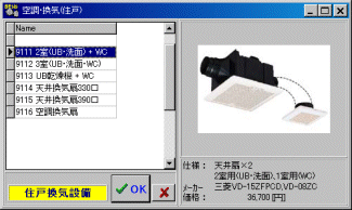 このページでは、各住戸内の換気設備の種類を決めます。 選択の仕方